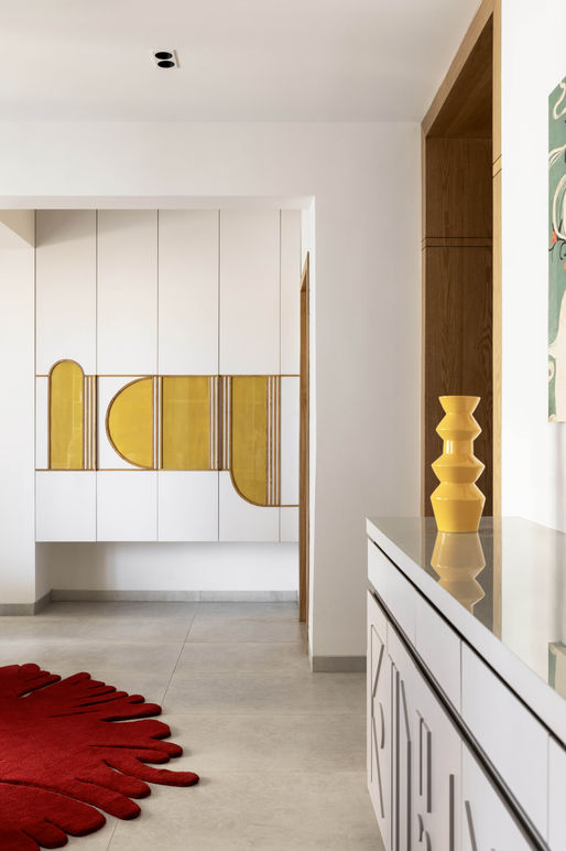 Tango, a vibrant 3BHK apartment in the heart of Madras’ IT hub, is a living canvas where bold hues, quirky textures, and playful patterns come together. Located on the 9th floor, the space offers a captivating view of the expressway, with the distant sea adding a touch of serenity to the otherwise dynamic setting. Spanning 1725 square feet, the apartment reflects its inhabitants: colorful, fun, and unapologetically unique.